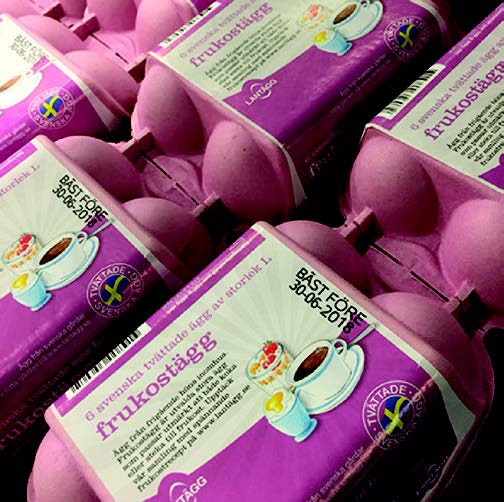 瑞典 DAVA Foods 公司每天清洗、分揀和包裝 150 萬枚蛋類,其位于斯卡拉的全自動(dòng)化加工廠內(nèi)運(yùn)行著 17 條生產(chǎn)線。該公司曾經(jīng)采用標(biāo)簽印刷和粘貼技術(shù),印制帶有“最佳食用期限”編碼標(biāo)記的不干膠標(biāo)簽并將其牢牢貼在蛋類包裝盒頂部。然而,該系統(tǒng)需要頻繁停機(jī)以補(bǔ)充標(biāo)簽和清除廢棄的底紙。此外,它還需要操作人員根據(jù)每個(gè)生產(chǎn)批次手動(dòng)更改信息,這道工序很容易出錯(cuò)繼而返工。該公司希望盡可能降低包裝成本、縮短停機(jī)時(shí)間并減少錯(cuò)誤,為此而尋覓新的打標(biāo)打碼解決方案。